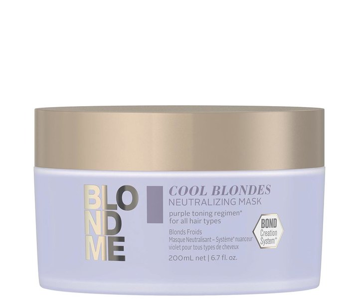 Schwarzkopf Blond Me Cool Blondes Neutralizing Masker is hét treatment voor elke blondine met licht (gekleurd) blond haar. Meestal zijn koele, blonde haren blootgesteld aan een chemische behandeling zoals blondering en dit masker herstelt de interne structuur van kwetsbaar haar. Het ontwart poreus haar, waardoor het gemakkelijk doorkambaar wordt. Daarnaast is het masker verrijkt met paarse pigmenten om de koele blonde look te behouden, op te frissen of te verrijken. Het maakt gehighlighte of lichteren blondines lichter zonder de blonde haarkleur te veranderen. Dit masker is perfect om je haren extra verzorging te geven wat de neiging heeft warm te worden.